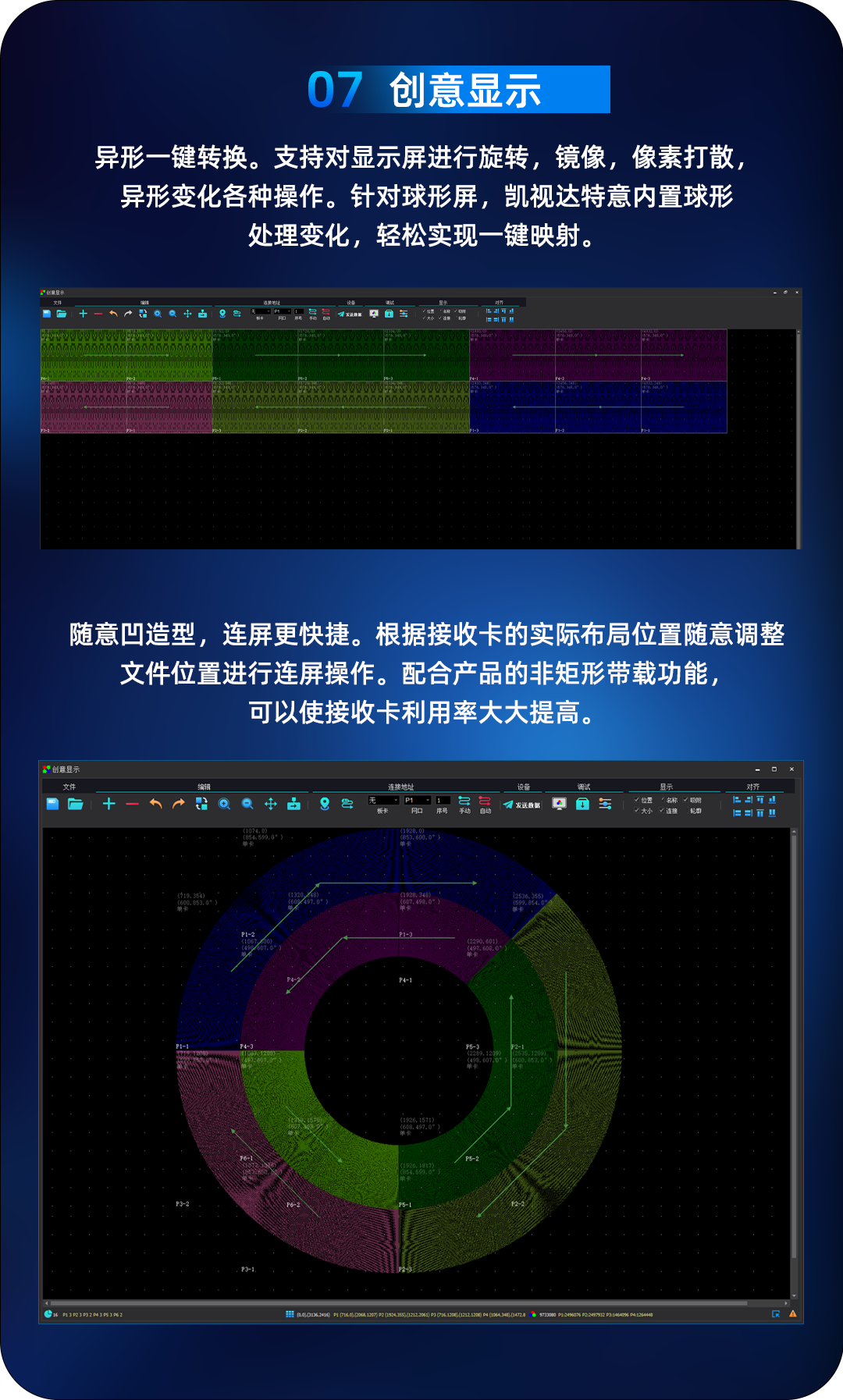 ☑️灵活适配:兼容异形屏、球幕、U幕等多种显示场景